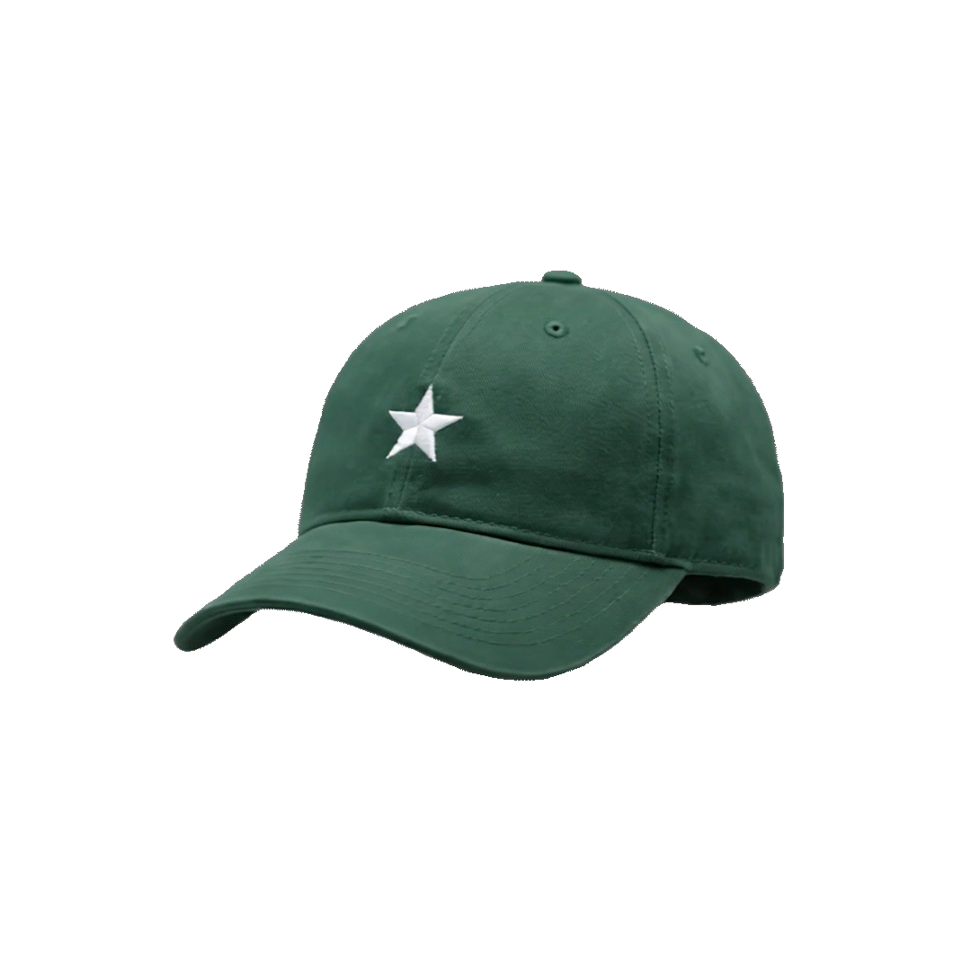 深みのあるフォレストグリーンに、潔いスターの刺繍が映える一点。この「いなたさ」と「ポップさ」の絶妙なバランスが、コーディネートに心地よい抜け感を作ります。スウェットやデニムでとことんアメカジに振るのも良いですが、あえてシャツやスラックスなど綺麗なスタイルの「外し」として投入するのがおすすめ。