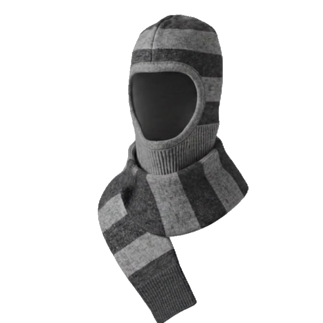 モノトーンの太ボーダーが、都会的で洗練された印象を与えるバラクラバ。首元にボリュームを持たせることで小顔効果も期待でき、シンプルなロングコートやダウンに合わせるだけで、一気にモードな雰囲気に格上げします。フードを被らずとも、ネックウォーマーとしてくしゅっとさせるだけで様になる、感度の高い一点です。